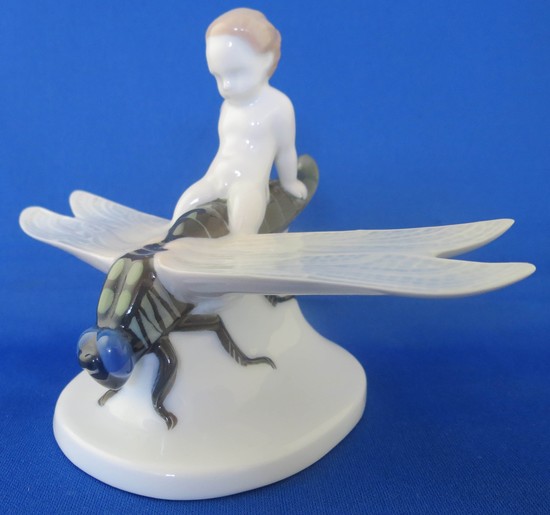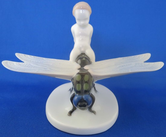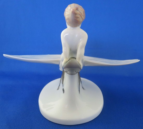 A Rosenthal porcelain of a boy riding a dragonfly by Albert Caasmann (1886-1968) ca. 1920. This is model “K 354” which is impressed on the bottom. It is also marked in green underglaze “Rosenthal Selb-Bavaria”. The figure is 4” high and is in mint condition.