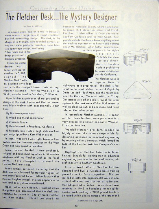 American Art Deco Furniture by Ric Emmett After FOUR years of research and writing this book has become a REALITY!!! It has become a part of the permanent collection in the Art & Design Libraries in many museums and universities. 200 copies were sold in the pre-publication offer!!! The book; Five hundred and sixty-nine pages of color pictures (none previously published), descriptions and period research has become the "bible" on the subject. It has chapters on Paul Frankl, Donald Deskey, Gilbert Rohde, Kem Weber and nineteen other American designers of the Art Deco period. The book includes chapters on manufacturers, a useful bibliography and a chapter showing tags, marks and labels. American Art Deco Furniture is published in an edition of only 1000. Each book is numbered. There will be NO second edition or any other printing or e-book publication. The book price is $ 150.00 plus local sales taxes if applicable. You may also send a check for $ 150.00 (add 7 % if located in Florida) along with your address to: Art Deco Pros., Inc. 7125 SW 47 # 303 Miami, FL 33155. Shipping included. Iza Emmett (305) 798-0308