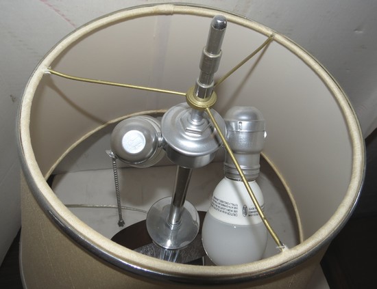 AMERICAN ART DECO MAHOGANY AND CHROME TABLE LAMP