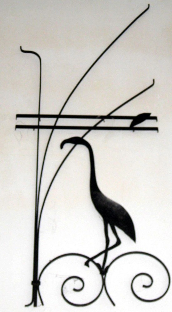 This American art deco screen door stretcher once graced the front door of a fine South Florida home! It was a tradition in Miami from the 1920’s thru the 1950’s to have decorative screen door stretchers on their front doors. Most homes did not have air conditioning and screen doors were a must to let the breeze flow in. The results became a form of folk art. Constructed of hand wrought iron by local artisans, this screen stretcher has a flamingo standing in water in a leafy grove. It is 64” high x 28” wide.