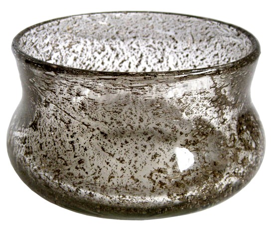 This sophicated norwegian glass vase was designed and made by Benny Motzfeld (1901 - 1995). She was called “Today the most collected Norwegian glass artist”. The blown waisted vase of colorless glass is internally decorated with gold inclusions and trapped bubbles and was made ca 1965. The polished pontil is acid stamped “plus”, “BM” and “Norway”. The vase is 4” high and 7” diameter.