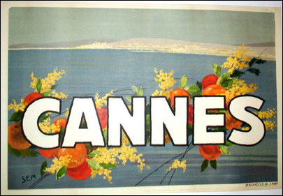 A beautiful French art deco stone lithographic poster by SEM (Georges Goursat 1863-1934) for the City of Cannes. The poster, in horizontal format, was printed by Draeger, Paris in 1930 and measures 31" x 47".