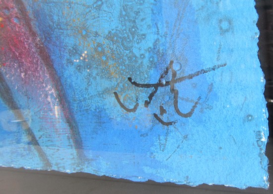 This other worldly print is by Roberto Sebastian Matta Echaurren (Known as Matta) (1911 - 2002). Matta is known as Chile’s most famous painter and an internationally known Surrealist. This print, titled "L’Oeuf de Verbe", is Carborundum in colors, hand colored in pastel and gouache. The paper is 38" x 38" and is signed on the lower right with Matta’s cipher. It is numbered "22/125" on the lower left. Published by Nordstamp Fine Art in 1995, the piece is archively floated on black matting in a silver frame