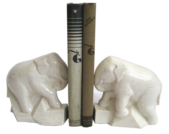 Claude Levi French Art Deco White Craqueleure Elephant Bookends