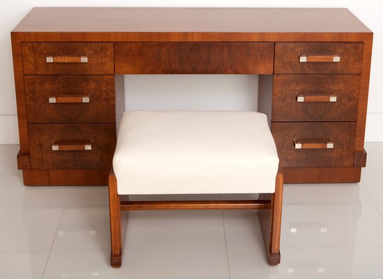 Donald Deskey for AMODEC American Art Deco Vanity Mirror and Bench