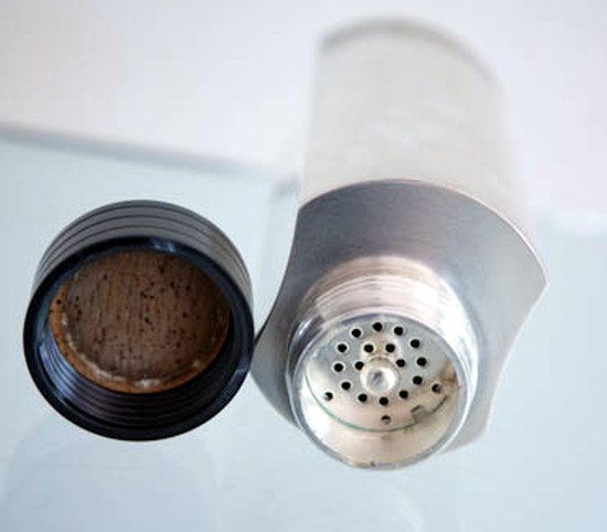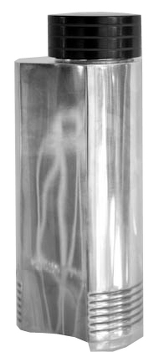 Folke Arstrom (1907 – 1997) designed this very “Avant-Garde” cocktail shaker in 1935 for GAB (Guldsmeds Aktie Bolaget) in Sweden. The shaker is in silver plate with a grooved black Bakelite top. It has the original strainer and cork seal. The bottom is marked with the GAB logo and “NS” and “ALP”. This important shaker is pictured in What Modern Was on page 84 and The Cocktail Shaker on page 75. It measures 8 ½” high and is 3 ½” in diameter.