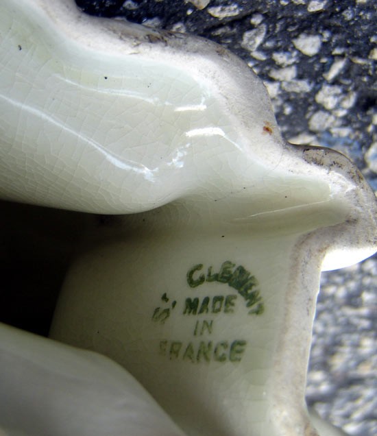This French art deco ceramic boar was sculpted by Charles Lemanceau (1905 – 1980) and produced by “Manufacture de Faiences d’Art de Saint-Clements” ca. 1930. The boar is marked on the inside “St. Clement” and “Made in France”. With a white craqueleure enamel finish, the boar is 7” high and 9” long.