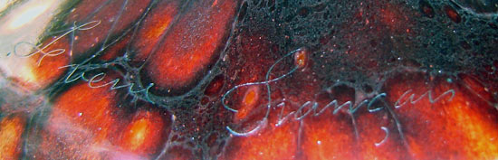 Art glass by Schneider was originally signed Schneider, Le Verre Francaise, or Charder (a contraction of Charles Schneider). Occasionally, it was signed with the inclusion of a small candy-cane of striped glass in the base.