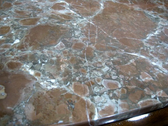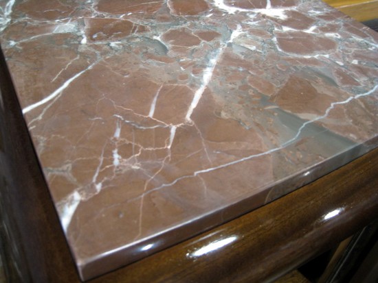 French Art Deco Flame Mahogany Sideboard with Rose Marble Top