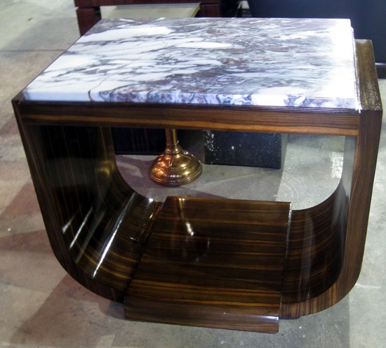 French Art Deco Macassar Ebony and Marble Table