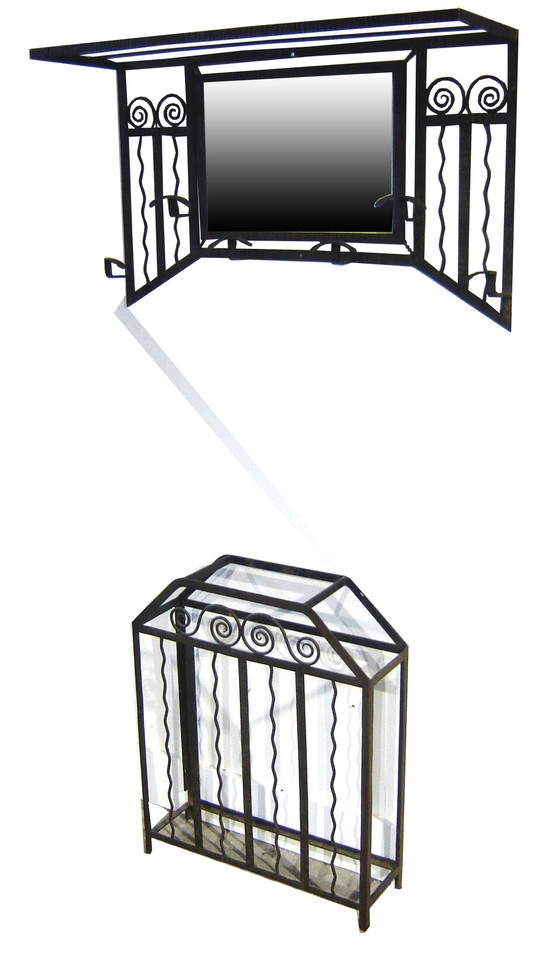 French Art Deco Wrought Iron Hall Tree Entryway Set
