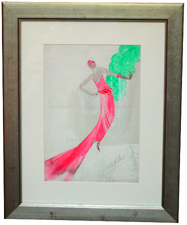 This is an original costume study gouache by Charles Gesmar (1900 - 1928), French, for the stage show "L'Americain". It is signed in pencil "C. Gesmar". The image measures 16" x 11" in a silver leaf frame measuring 27 1/2" x 22".