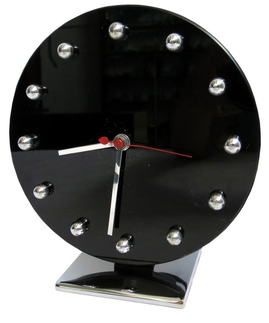 Gilbert Rohde American Art Deco Black Carrara Glass Clock