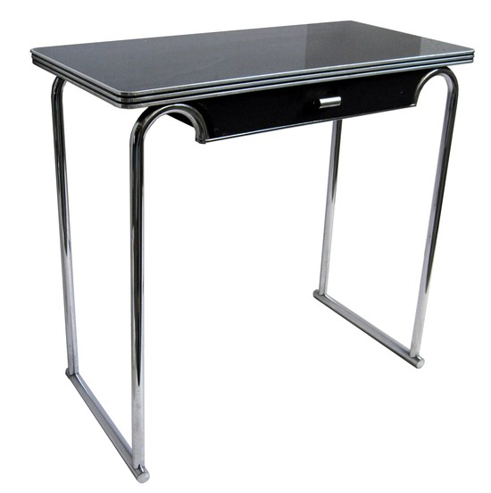 This sweet American art deco console table was designed by Gilbert RohdeGilbert Rohde