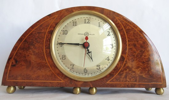 Gilbert Rohde American Art Deco Demilune Burlwood Clock 4718