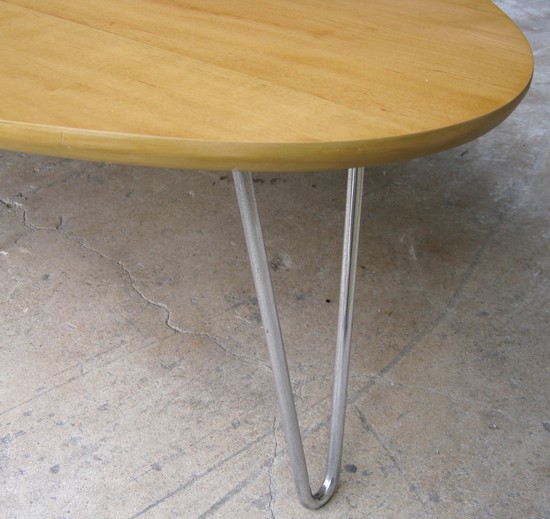 Isamu Noguchi (1904 – 1988) designed this rare and important “Rudder” American art deco coffee table ca. 1944 for the Herman Miller Company in Zeeland, Michigan. The table, Model IN-52, has a birch veneer top, two “hairpin” aluminum legs and a birch “Rudder” leg. This example was purchased directly from the Estate of a prominent Miami architect – a photo of the table in its place at the architect’s home is shown in the “details” portion of this listing - who purchased it new in the early 1950’s. The table is 50” long, 36” wide and 15 ½” high.