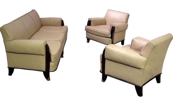 Jules Leleu French Art Deco Sofa & Two Armchairs