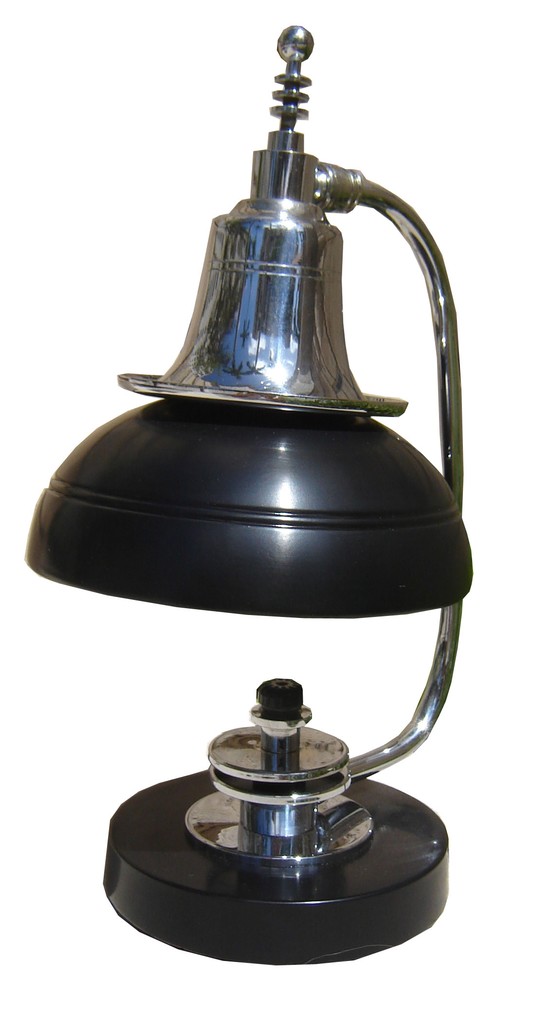 Manufactured by the Markel Corporation of Buffalo, New York in the 1930’s. This streamline American art deco table lamp features a base with two discs and a swiveling double shade which directs a pool of light for reading and an upper shade which allows a diffused light to emit. The lamp is 12” high and has been rewired.