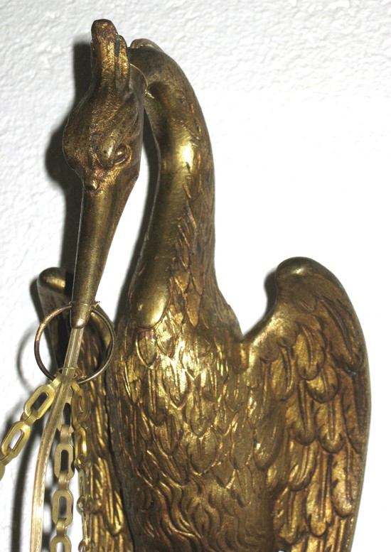 Pair French Art Deco Bronze Dore and Alabaster Stork Wall Sconces