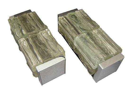 A stunning pair of French postwar chrome and glass sconces by Jean Perzel (1892 – 1986). The sconces with bright chrome steel and textured glass are signed in script “J Perzel”. The sconces measure 9-3/4” high by 4” wide and extend 3-1/4” from the wall.