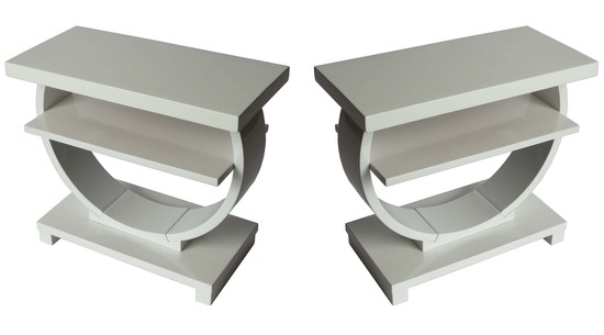 Pair of White Lacquer Modernage End Tables