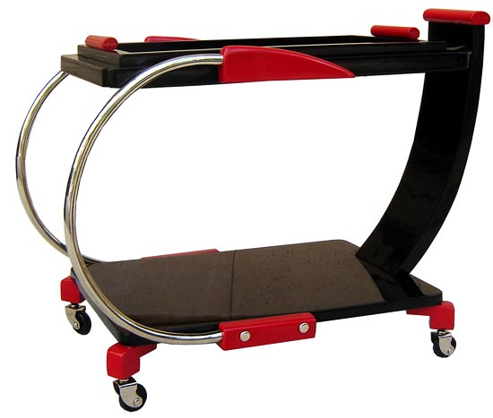 Red and Black Lacquer Streamline Tea Trolley / Bar Cart