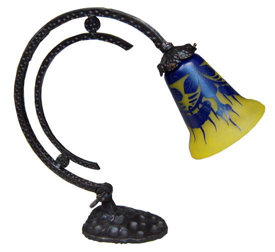 This French wrought iron table lamp with cameo glass shade by Charles SchneiderCharles Schneider