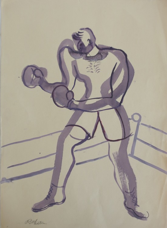 The Boxer a Watercolor by WPA Artist Jerry Roth