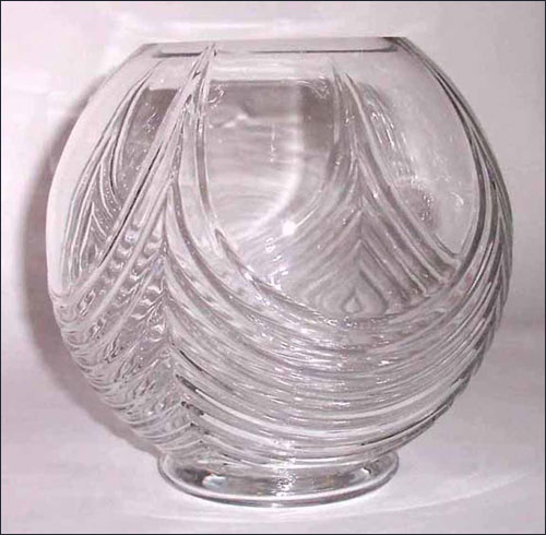 A very rare and important glass vase designed by Walter Von Nessen (1889-1943) for the Heisey Glass Company in the Stanhope pattern. The vase, which was designed in 1936 was part of a line which was only offered from 1936 to 1941. It measures 6 ¾” high and is 7 ½” in diameter and has a polished top rim. It is marked with the Heisey “H” inside a diamond.