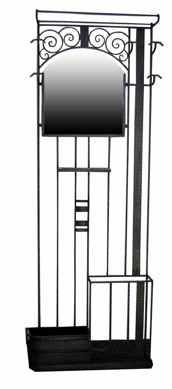 This French art deco hand wrought iron hall tree is from the 1930s. The hall tree is 75-1/2” high, 24” wide and extends 9” from the wall.