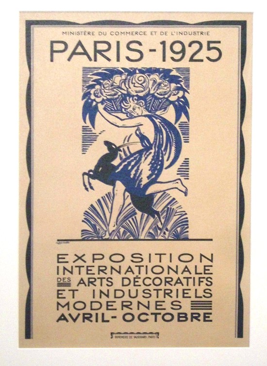 The 1925 Exposition Internationale des Arts Decoratifs et Industriels Modernes which gave the name "Art Deco" to the new design movement, opened on April 28, 1925 and closed in October of that year. Arguably the most important design exhibition of the 20th Century, the fair was originally planned for 1915 but World War One and the following economic uncertainty caused it to be postponed until 1925. Germany was invited too late (possibly intentionally) to mount a presence and Herbert Hoover, then the Secretary of Commerce, informed the French government that the United States would not participate. Reportedly some sixteen million people visited the exhibition. The Exhibition, which was to reflect glory on France and its consumer goods, required a new graphic image. This started slowly with a poster by Henri Rapin (1873-1939)announcing the sale of bonds for the Exposition showing craft workers with flags of several countries (including the United States). The bonds, authorized April 1923, look much the same as other French bonds of the era. Ric collected these posters over a period of 30 years! The 10 works are documented in most of the literature of the period as well as in almost every book written about Art Deco after the period. They are in A+ Condition!! Framed and matted in museum quality framing by Steve Meeks & Sons at Borders in Miami. They are NOT to be sold individually. The entire collection is priced at $ 70,000.00. These are the works included: 1. Bonds Emission Poster by Henry Rapin (described above) 2 - 5. Robert Bonfils (1886-1972) created the most famous and ubiquitous of the four posters commissioned for the exhibition. His creation in red and black in imitation of a woodcut shows a young maid and leaping deer over stylized flora and a frieze of geometric flowers above her head. All four elements became icons of the Art Deco movement. The poster was produced in the standard 23’’x15’’ size and also in a larger 39’’x26’’ size. The image was also used on the cover of the official catalog of the exhibition. The poster also exists in the standard 23’’x15’’ size format with blue replacing the red…the blue poster is very rare. 6. The only other poster to be offered in the two sizes is Charles Loupot’s (1892-1962)stunning vision of factories (industry) pouring out smoke which turns into a giant stylized flower (art). 7. Andre Girard (1901-1968) produced the rarest of the four posters for the Exhibition. His image shows a pyramid of smokestacks in the background with their smoke rising toward the center. A pyramid of men struggle to reach a chalice held aloft. This poster is only known in the standard 23’’x15’’ size. 8. The organizers reached back to a “romantic” style for the fourth poster. Emile-Antoine Bourdelle (1861-1929) was considered at the time of the Exhibition to the most important living sculptor in France and in contrast to the younger designers of the other three posters he represented a link to the past glories of French art. The legend on the bottom translates to: “by labor and by Genius”. It is only found in the standard 23”x15” size. 9. A large etching by Louis Pierre Rigal (1889-1959) was awarded to exhibitors and judges at the Exhibition. The etching reveals two young women on a divan, the one on the left is all but completely covered and asleep…she represents the Old Order, the past. The girl on the right is smiling and partly nude, she has stylized flowers and ringlets in her hair and represents the exhibition’s break with the past. A modern vase, bust, plate and industrial gear complete the message: There is a new day, the past is behind and the 1925 exposition leads the way! 10. An actual bond issued for the Paris Exposition.