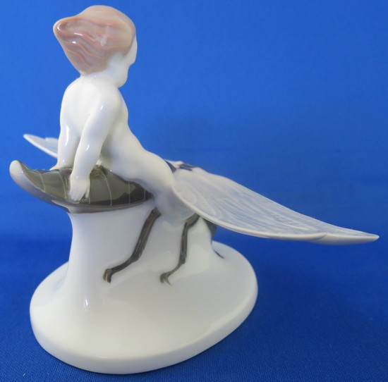 A Rosenthal porcelain of a boy riding a dragonfly by Albert Caasmann (1886-1968) ca. 1920. This is model “K 354” which is impressed on the bottom. It is also marked in green underglaze “Rosenthal Selb-Bavaria”. The figure is 4” high and is in mint condition.