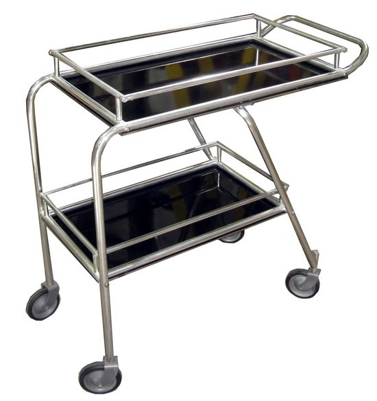 This streamline American art deco rolling cart was developed by Frantz Industries in 1938 for use on the DC-3, the legendary airplane that revolutionized air travel. The first aircraft to have an in-flight kitchen! Constructed of aluminum and black Bakelite, the cart was designed to roll the down the aisles of the DC-3 but will look great serving in your home. The decal reads “Frantz Industries, Genuine Aero-Art Product, Los Angeles” The cart measures 31” long x 15” wide x 30” high.