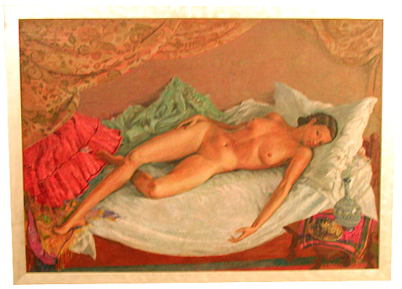 A superbly painted oil on canvas by Edouard Chimot (1890 - 1959), French. Chimot was known for his illustrations and etchings and for his wonderful depictions of the female body. This painting measures 29" x 40" and is signed "Chimot" on the lower left.