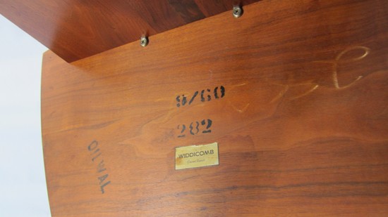 George Nakashima was born in Spokane, Washington in 1905. A sculptor, architect and woodworker he graduated from M.I.T. with a master's in Architecture in 1930. Nakashima wrote a book describing his experiences and relationship with wood, The Soul of a Tree (1981). In 1983, he designed the impressive “Altar of Peace” installed in the Cathedral of St. John the Divine in New York City. He designed the ORIGINS line for the Widdicomb Furniture Company in Grand Rapids, Michigan and supervised the production of the line. Each piece was marked with his name and dated.