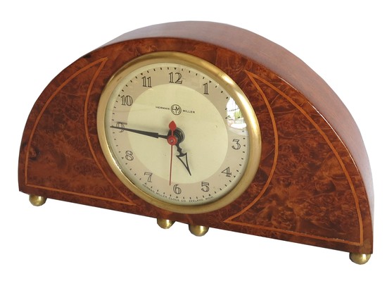 Gilbert Rohde American Art Deco Demilune Burlwood Clock 4718
