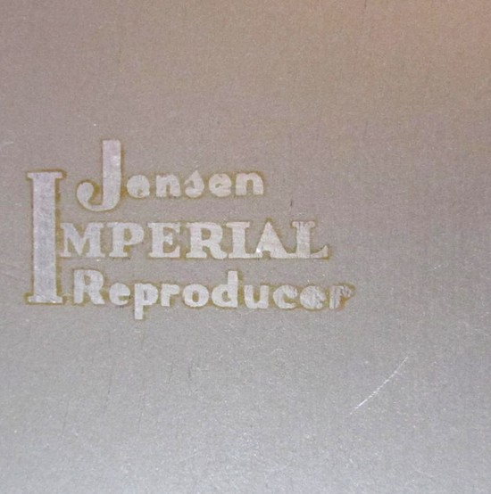 Peter L. Jensen of the Jensen Radio Manufacturing Company, 6601 South Laramie Avenue, Chicago, Illinois, introduced the Jensen Imperial Reproducer in 1929, calling it “the concert grand of reproducers”. This American art deco version was featured on the cover of the company’s 1936 Catalog of Jensen High Fidelity Reproducers. The speaker is in black lacquer with eight vertical maple bars and two metallic painted gold bars that end at the control panel on top. Inside the control panel a decal reads “Jensen Imperial Reproducer”. It is also marked “Model D” and serial number “A-7033”. A red “jewel” light on the bottom shows when the speaker is turned on. The speaker is 46 ½” high, 27 ¾” wide and is 18 ½” deep.