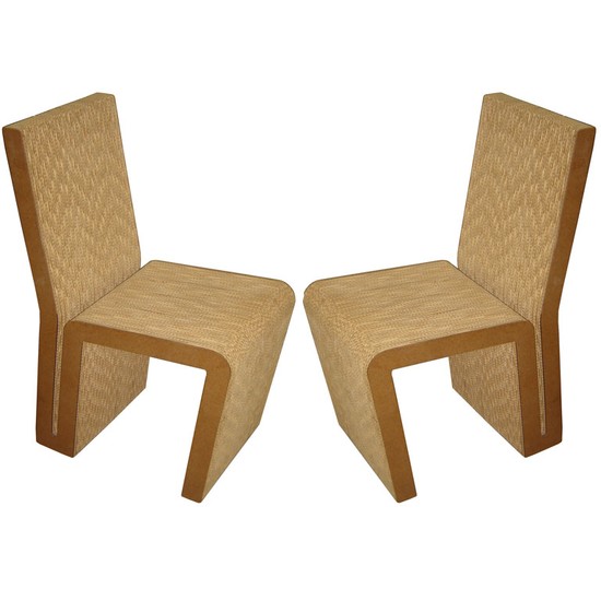 A pair of Frank Gehry (1929- ) corrugated cardboard side chairs from his “Easy Edges” group of 1969-73, these are from ca. 1972. The remarkably strong and comfortable chairs are pictured in “Frank Gehry Buildings and Projects” p. 64 which was published by Rizzoli in 1995. The chairs are 22” deep, 15” wide and 32-1/2” high.