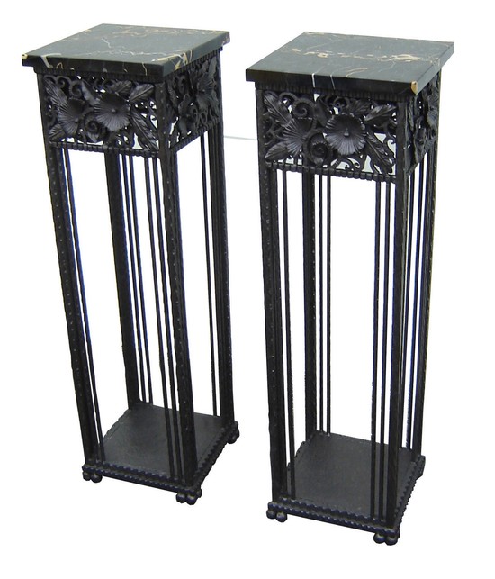 Pair French Art Deco Wrought Iron Stands in the Style of Paul Kiss