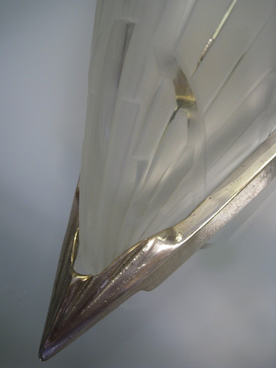 Pair of French Art Deco Frosted Glass & Nickel Bronze Sconces
