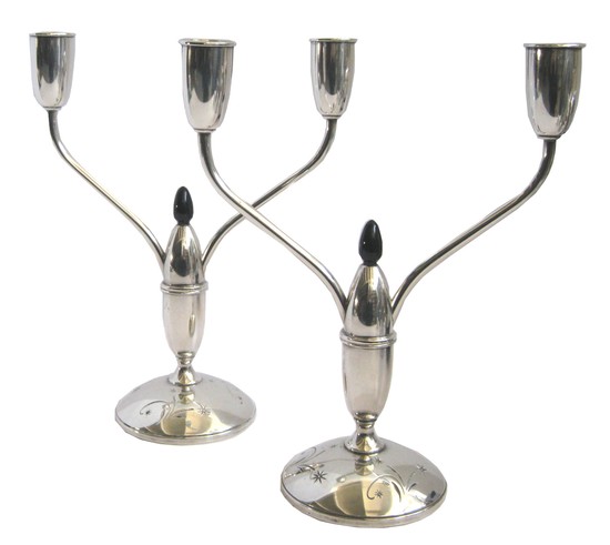 Pair of Gorham American Art Deco Sterling Silver Candelabra