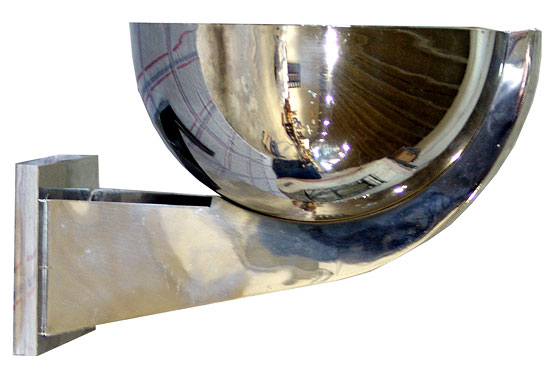 This French art deco sconce is by Jean Perzel (French, 1892-1986). Its soft gleaming curves epitomize the 1930’s machine age style. The nickel plated sconce dates from the 1930’s and has been rewired for American electricity. It measures 9 ½” wide x 8 ½” high and extends 13” from the wall.