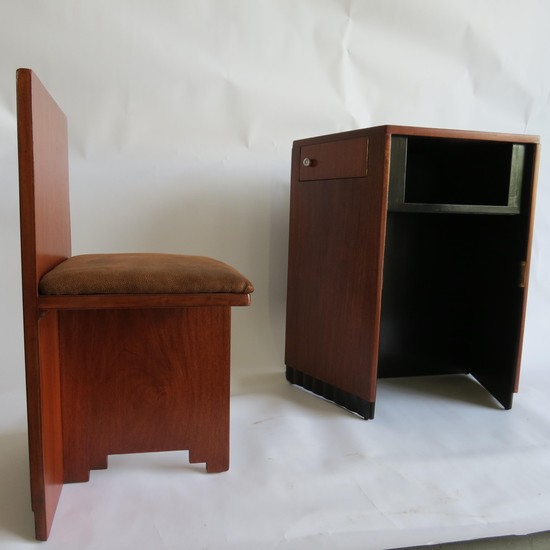 Small American Art Deco Writing Desk and Chair